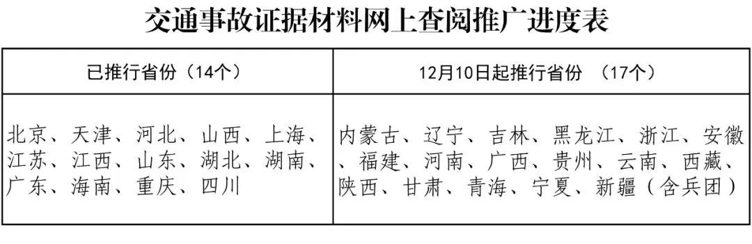 在北京、天津、河北、江蘇等14個(gè)省份推行交通事故證據(jù)材料網(wǎng)上查閱、已提供1.9萬(wàn)次查閱服務(wù)基礎(chǔ)上,在其余17個(gè)。▍^(qū))全面推廣應(yīng)用。