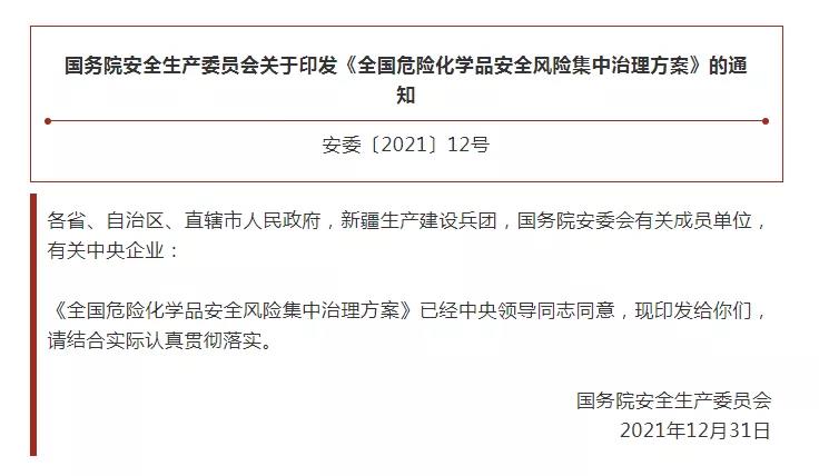 重磅!國務(wù)院安委會部署全國危化品安全風險集中治理