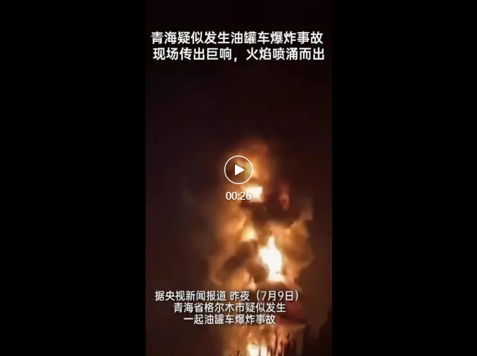 7月9日,青海省格爾木市疑似發(fā)生一起油罐車(chē)爆炸事故。據(jù)了解,爆炸造成2人受傷,傷者生命體征平穩(wěn),目前無(wú)人員死亡。