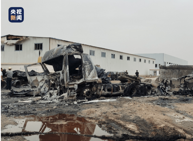 總臺(tái)記者已到達(dá)事故現(xiàn)場(chǎng),事故發(fā)生于青海省格爾木市G109國(guó)道與東海路交叉口向北約200米處,F(xiàn)場(chǎng)火勢(shì)已經(jīng)撲滅,空氣中彌漫著刺鼻的味道,可以看到三輛殘缺不全的罐車(chē)殘骸,一旁瑞城工業(yè)園的側(cè)門(mén)也在爆炸中被炸毀。