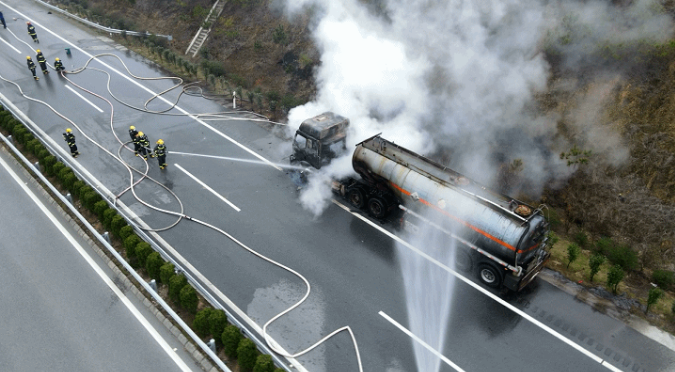 1月12日16時(shí)10分許,在寧定高速于都段,一輛裝載35噸鹽酸的槽罐車(chē)在行駛途中駕駛室突然著火。 消防救援人員到場(chǎng)后發(fā)現(xiàn)槽罐車(chē)駕駛室呈猛烈燃燒狀態(tài),在對(duì)現(xiàn)場(chǎng)做好警戒的同時(shí),消防救援人員立即對(duì)火勢(shì)進(jìn)行撲救。 15分鐘后,明火被成功撲滅,隨后,消防救援人員繼續(xù)對(duì)車(chē)輛罐體進(jìn)行冷卻降溫。 22時(shí)30分,在多部門(mén)的共同努力下槽罐車(chē)內(nèi)鹽酸被成功轉(zhuǎn)移。 據(jù)了解,該車(chē)輛是從福建開(kāi)往龍南,途經(jīng)于都段時(shí)駕駛室突然冒煙起火,駕駛員使用滅火器撲救未果后,便立即撥打119報(bào)警求助。 溫馨提醒:危險(xiǎn)化學(xué)品具有爆炸、易燃、毒害、腐蝕和放射性等危險(xiǎn)性存在著較大的風(fēng)險(xiǎn)和事故隱患。