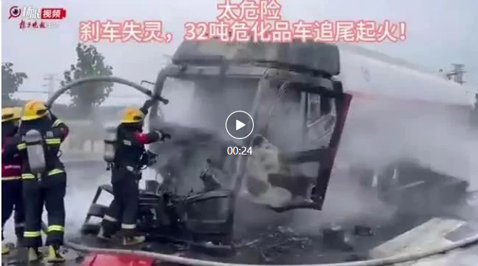 6月4日12時(shí)57分左右,江蘇淮安市消防指揮中心接到報(bào)警稱,位于淮安市洪澤區(qū)朱壩鎮(zhèn)往南京方向,危化品運(yùn)輸車追尾起火。 接到報(bào)警后,淮安消防支隊(duì)立即調(diào)派洪澤區(qū)大隊(duì)高良澗消防救援站3車14人趕赴現(xiàn)場(chǎng)處置。高良澗消防救援站到達(dá)現(xiàn)場(chǎng)后發(fā)現(xiàn),現(xiàn)場(chǎng)事故為;愤\(yùn)輸車追尾半掛車,;愤\(yùn)輸車車頭著火并冒出黑煙,駕駛?cè)藛T通過車載滅火器嘗試將火撲滅未果。 經(jīng)現(xiàn)場(chǎng)勘察了解,;愤\(yùn)輸車裝載的液體為汽油,被追尾半掛車裝載的是造紙材料,發(fā)現(xiàn)后車著火后時(shí)及時(shí)駛離現(xiàn)場(chǎng)。指揮員立即指揮,開展火災(zāi)撲救工作,一組出水槍,重點(diǎn)對(duì)著火的車頭部位進(jìn)行滅火;另外一組出水槍對(duì)后部槽罐進(jìn)行冷卻降溫,保障罐體安全。經(jīng)過緊張救援,成功將明火撲滅。 據(jù);奋囻{駛員介紹,他的車上裝有32噸多汽油芳烴,在信號(hào)燈處,他與前方等綠燈通行的半掛車有一段距離,覺得剎車可以剎住,剎車時(shí)發(fā)現(xiàn)剎車失靈,直接與前車追尾,車前冒黑煙,他下車拿滅火器發(fā)現(xiàn)撲滅不了。