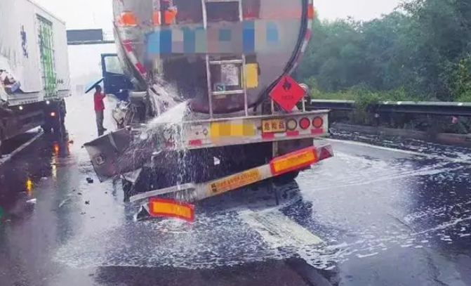 9月24日,二廣高速陽曲段發(fā)生一起油罐車因追尾導(dǎo)致罐體破裂,柴油嚴重泄漏的交通事故。為防止引發(fā)更嚴重的二次事故,各相關(guān)部門人員緊急趕赴現(xiàn)場,快速處置,消除險情。 這起事故發(fā)生在當日清晨6時30分許,位置在高速大盂服務(wù)區(qū)附近由南向北路段,一輛廂式貨車在此追尾一輛油罐車,油罐車裝有約30噸柴油。事故致罐體左后側(cè)破損,巨大的壓力下,罐里的柴油大量外泄,在高速路面流淌,情況非常危險。 事故發(fā)生后,高速路政、高速交警、消防救援等部門的人員迅速趕到現(xiàn)場,管控現(xiàn)場交通,試圖對罐體破損后進行堵漏,減緩泄漏速度,并協(xié)調(diào)進行倒罐事宜。對流淌至路面的柴油設(shè)置圍擋引流,再進行稀釋。 上午10時許,現(xiàn)場倒罐完畢,事故車上剩余的柴油被安全運離,險情基本得到控制。此次事故未造成人員傷亡。