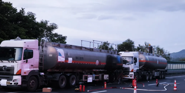 8月1日13時38分,汕尾市應(yīng)急管理局接到報(bào)告,潮惠高速往惠州方向1250KM+80M(陸河路段)處一輛油罐車有著火冒煙情況。 接報(bào)后,市應(yīng)急管理局高度重視,立即通報(bào)給陸河縣應(yīng)急管理局要求立即派員前往核查處置,并與市公安局、市交通運(yùn)輸局、市消防救援支隊(duì)保持聯(lián)系實(shí)時了解現(xiàn)場處置情況,通過高速視頻監(jiān)控實(shí)時查看現(xiàn)場情況,同時派出專家組到現(xiàn)場指導(dǎo)處置。 陸河縣成立了由縣政府主要負(fù)責(zé)同志為指揮長的現(xiàn)場指揮部,公安、應(yīng)急、交通、住建、衛(wèi)健、消防等部門第一時間趕赴現(xiàn)場開展救援工作,并封閉事故路段。 經(jīng)緊急處置,車輛明火于13時55分被撲滅。經(jīng)現(xiàn)場確認(rèn),油罐車上汽油未發(fā)生泄漏,系左后側(cè)輪胎自燃冒煙起火。 事故發(fā)生后,事發(fā)路段實(shí)行雙向臨時管控,擁堵車輛全部進(jìn)行疏導(dǎo)。市應(yīng)急管理局及時協(xié)調(diào)有關(guān)企業(yè)派出接駁車對事故車進(jìn)行倒罐處理,并派出業(yè)務(wù)骨干和中石化;穼<亿s赴現(xiàn)場進(jìn)行指導(dǎo)。 因罐體油品溫度較高,救援人員持續(xù)幾個小時進(jìn)行淋水降溫處理,待溫度降低后進(jìn)行倒罐作業(yè)。事發(fā)油罐車上汽油已于21時完成倒罐,事發(fā)路段于21時45分左右恢復(fù)正常通行,至此險情處置完畢。由于滅火救援工作及時高效,本次事故未造成人員傷亡。