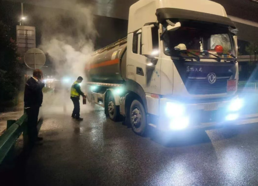 危險品罐車起火10月12日晚20時,陜西西安未央北收費站入口一輛陜B牌照的重型油罐車駛?cè)胲嚨罆r,后方輪胎猛地竄出黑煙,隨即燃起明火。火借風(fēng)勢,隨著彌漫的煙霧迅速蔓延,而罐體內(nèi)滿載30余噸油料,更讓現(xiàn)場籠罩在巨大的危險之中,情況十分緊急。工作人員發(fā)現(xiàn)后,第一時間提起滅火器,飛奔沖向煙霧翻騰的罐車。經(jīng)過現(xiàn)場工作人員和司機的共同努力,明火快速被撲滅,其余車輛有序駛離。