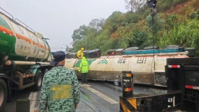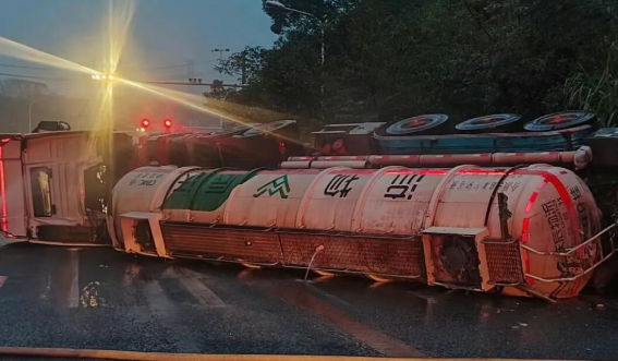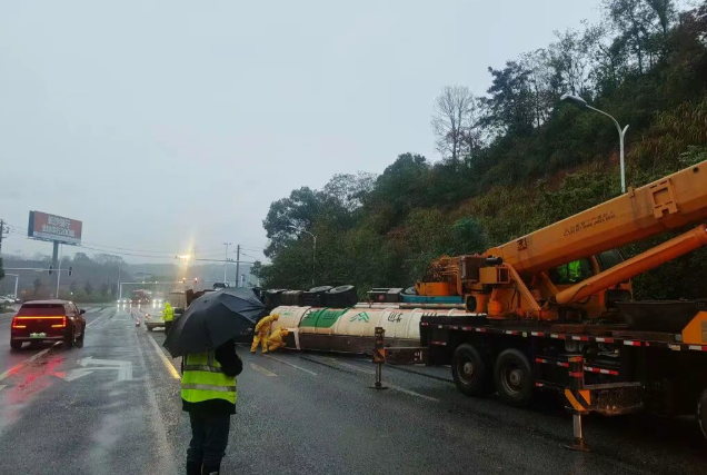 11月3日06時(shí)04分,湖南湘潭市消防救援支隊(duì)接到報(bào)警稱湘潭縣018縣道(往楊家橋收費(fèi)站方向)一罐車發(fā)生側(cè)翻泄漏,車上載有濃度為32%的液堿。指揮中心立即調(diào)派金桂路站共3輛消防車、12名指戰(zhàn)員趕赴現(xiàn)場(chǎng),同時(shí)聯(lián)動(dòng)應(yīng)急、交通、環(huán)保公安等部門協(xié)同處置。06時(shí)22分,消防救援力量抵達(dá)事故地點(diǎn)。 經(jīng)偵查發(fā)現(xiàn),事故車輛為一輛槽罐車,車載約33噸、濃度32%的液堿,行駛過(guò)程中發(fā)生側(cè)翻,目前罐頂入孔處出現(xiàn)少量泄漏。根據(jù)現(xiàn)場(chǎng)情況,帶隊(duì)指揮員立即組織力量在泄漏點(diǎn)設(shè)置水槍,對(duì)泄漏的液堿構(gòu)筑圍堤封堵和封堵下水道,阻止泄漏的液堿進(jìn)一步向外擴(kuò)散,并迅速利用堵漏器材對(duì)泄漏點(diǎn)進(jìn)行封堵。 同時(shí),經(jīng)過(guò)現(xiàn)場(chǎng)指揮部及相關(guān)專家的評(píng)估決策,決定采用對(duì)罐體進(jìn)行切割來(lái)輸轉(zhuǎn)倒罐的方案,進(jìn)行本次事故處置。9時(shí)05分,救援人員使用自帶防爆轉(zhuǎn)料泵、軟管等裝備開(kāi)始實(shí)施倒罐作業(yè)。經(jīng)過(guò)近4個(gè)小時(shí)的持續(xù)奮戰(zhàn),9時(shí)51分,救援人員成功將事故車槽罐內(nèi)液堿轉(zhuǎn)移至備用槽罐,順利完成倒灌作業(yè)。經(jīng)反復(fù)檢測(cè)確認(rèn),現(xiàn)場(chǎng)無(wú)危險(xiǎn)后,全體人員安全撤離。