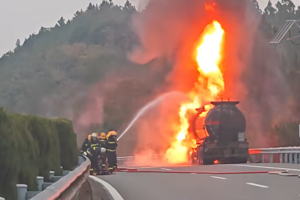近日,江西上萬(wàn)高速陳營(yíng)鎮(zhèn)柳樹(shù)村段(上饒往南昌方向),一輛裝載30多噸31%濃度鹽酸的;愤\(yùn)輸車(chē)突發(fā)大火,高溫炙烤下的鹽酸罐體隨時(shí)可能泄漏,后果不堪設(shè)想。 消防救援人員迅速趕到現(xiàn)場(chǎng),槽罐車(chē)車(chē)頭及輪胎火勢(shì)明顯,滾滾黑煙飄向半空。鹽酸具腐蝕性,處置不當(dāng)易引發(fā)泄漏次生災(zāi)害。消防救援人員立即架設(shè)水槍,分別朝車(chē)尾及左右兩側(cè)起火部位噴射,壓制火勢(shì)。經(jīng)過(guò)近30分鐘的全力撲救,明火被成功撲滅。從火勢(shì)控制到罐體檢查,從鹽酸倒運(yùn)到車(chē)輛清障,救援人員連續(xù)奮戰(zhàn)5個(gè)多小時(shí)。當(dāng)晚22時(shí)20分,30噸鹽酸全部安全倒罐,罐體隱患徹底消除。隨后,受損車(chē)輛被快速拖離,路面清障同步完成。此次火災(zāi)未造成人員傷亡,具體原因正在進(jìn)一步調(diào)查中。。
