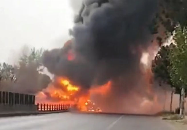 突發(fā)!河南;愤\輸車自燃,危險品有爆炸風(fēng)險!